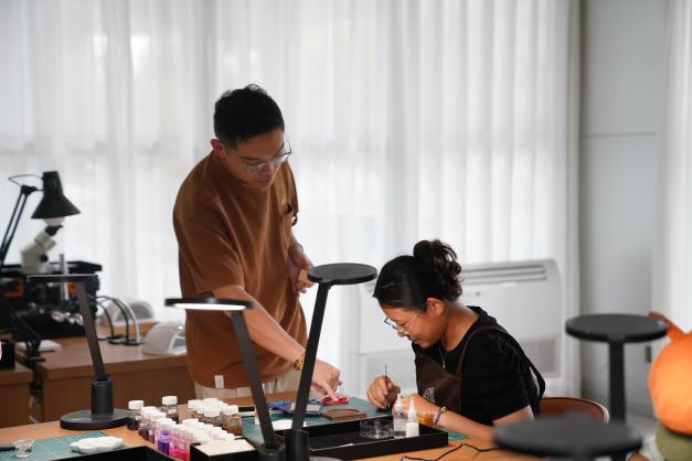 课程创新尝试“双轨制教学体系”:一方面由珠宝学院资深教师系统梳理景泰蓝600年工艺脉络,解析掐丝、点蓝、烧蓝等核心技艺的文化基因;另一方面组织学院专业高年级学生担任助教,将课堂理论转化为可操作的创作指导。这种“教师授业+朋辈辅导”的模式,使抽象技艺具象化为可触摸的创作体验。