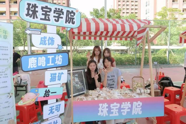 新生报到期间,珠宝学院同时于风雨操场集中举办了特色社团展示活动,各社团呈现出丰富多彩的学院社团风采与活力。活动现场,珠宝学院各社团不仅带来了创意作品展示,更特别设置了充满趣味性的面具装置互动体验,切身感受珠宝艺术的独特魅力。除此之外,社团成员还积极参与了学校官方直播活动,通过镜头生动地向广大网友介绍了各社团的特色与风采,向全网展现了珠宝学子的专业魅力与社团文化。