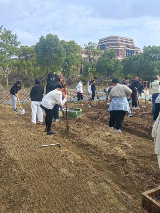 春耕夏耘,秋收冬藏,大自然的节律亘古如斯,揭示着劳动创造价值的永恒真谛。近日,上海建桥学院珠宝学院将这一古老智慧融入现代育人实践,以一场别开生面的劳动教育课,让知识的根系深植于实践的沃土。10月30日播种完毕,圆满完成了以“知在教室,行在大地”为主题的第一阶段教学。这不仅是技能的锻炼,更是一场精神的淬炼,是雷锋精神、志愿者精神与新时代劳动观在青春血脉中的一次生动交融。