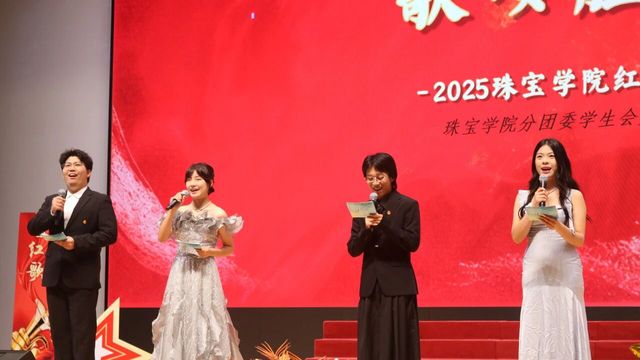2025年10月20日18:30“珠映山河志,歌颂胜利章”珠宝学院红歌会暨迎新晚会于大礼堂顺利举办。本次活动以舞台为镜,照亮少年眼中,生生不灭的火光;以歌声为舟,载学子共赴理想的远方,绽放意气昂扬。