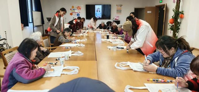 活动现场,珠宝学院的志愿者们为老人们分发了精心准备的帆布包和绘画颜料。在志愿者的耐心指导下,老人们兴致勃勃地投入到绘画中,不仅体验了艺术创作的独特魅力,更在“涂涂画画”中找到了童趣与成就感。活动结束时,每位老人都能带走自己亲手绘制的、独一无二的专属作品,这份特别的纪念品承载着满满的快乐回忆。