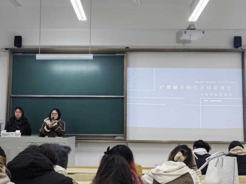 为进一步加强专业引导,深化产教融合,提升学生的专业素养与职业规划意识,2025年12月7日晚自习,珠宝学院产品设计B24-2班在二教307教室开展“班导师进教室”主题活动。本次活动由珠宝首饰设计专业班导师徐春雨老师主讲,围绕“专业比赛推荐”和“产教融合师生大讨论”两大内容展开,产设B24-2班全体同学参加。