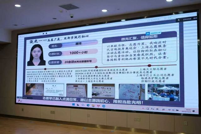 唐琦同学分享了自己在志愿服务方向的见解,她不仅展示参与支教的丰富成果,更讲述了在志愿服务中如何深刻认知自我价值。她鼓励同学们积极投入志愿服务,在初心坚守与责任担当中,让信仰的红色光芒愈发炽烈。