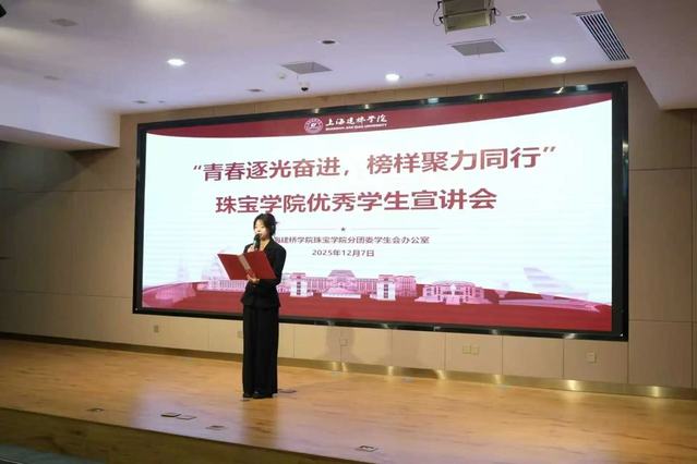 2025年12月7日晚上18:30,上海建桥学院珠宝学院于珠宝学院四楼报告厅开展“青春逐光奋进,榜样聚力同行”优秀学生宣讲会。有为青年齐聚一堂,为宝院学子讲述自己的成长故事,鼓励同学们积极参与志愿活动,追求梦想,不忘初心,牢记我校“感恩、回报、爱心、责任”的校训。
