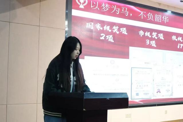 陈昕玥同学分享了她在校期间兼顾学业与学生工作的经验,提醒同学们要重视综合测评的成绩积累,通过学科竞赛、社会实践等多元渠道提升综测表现。她鼓励大家以梦为马、不负韶华,在拼搏中砥砺前行,努力成为积极向上的新时代青年。