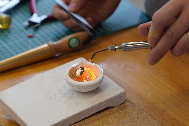 师生团队秉持“学术支撑工艺,工艺反哺学术”理念,大部分珠宝首饰产品均融入前沿设计理念与传统技艺研究,既确保了艺术与学术的双重价值,又通过市场检验提升了实践能力。专业教授与师资团队全程提供学术指导,为产品品质保驾护航,实现了“教学—研发—制作—展售”的闭环育人模式,有效提升了学生的创新能力与行业适配度。
