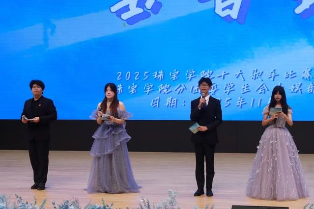 11月30日下午18:30,2025学年珠宝学院举办的“青春当‘燃’,宝音璀璨”十大歌手决赛在大礼堂拉开帷幕。出席本次比赛的评委嘉宾有:珠宝学院辅导员董蕊老师、唐婷玉老师、温水俊老师、吴文雯老师、2024年珠宝学院十大歌手冠军刘曼绮同学、校十佳歌手亚军校合唱团副团长雷昊泽同学、珠宝学院主席团成员以及各兄弟学院主席团代表。这场比赛,不仅是歌手们展现自我的舞台,更是我们所有观众的视听盛宴。