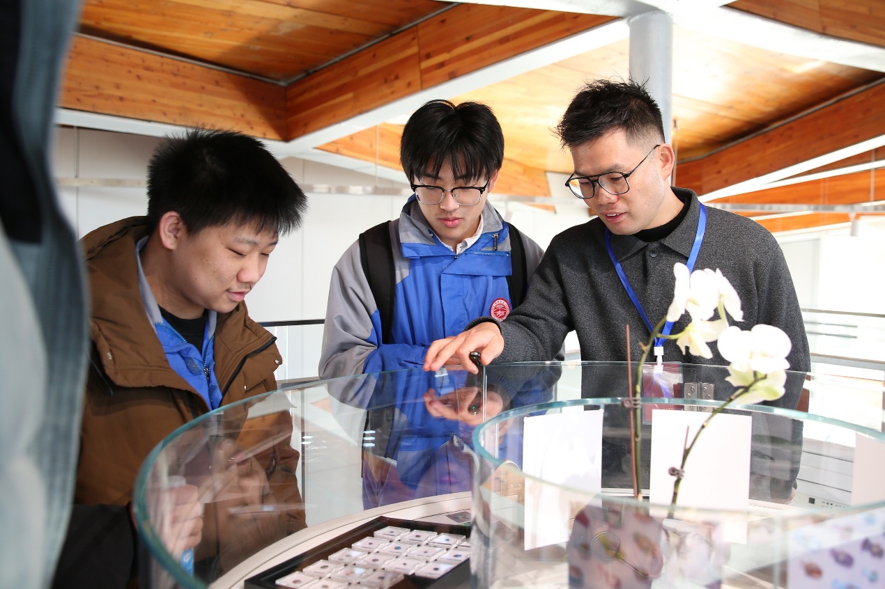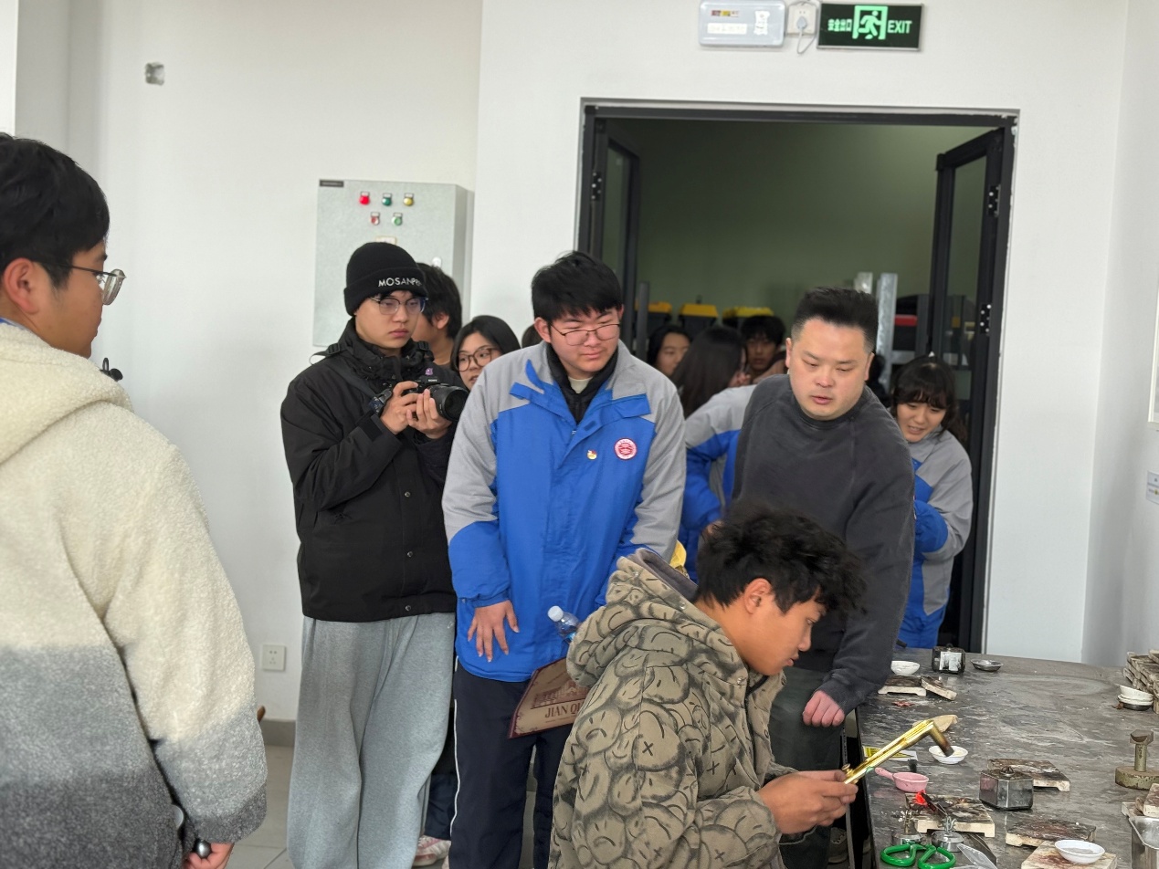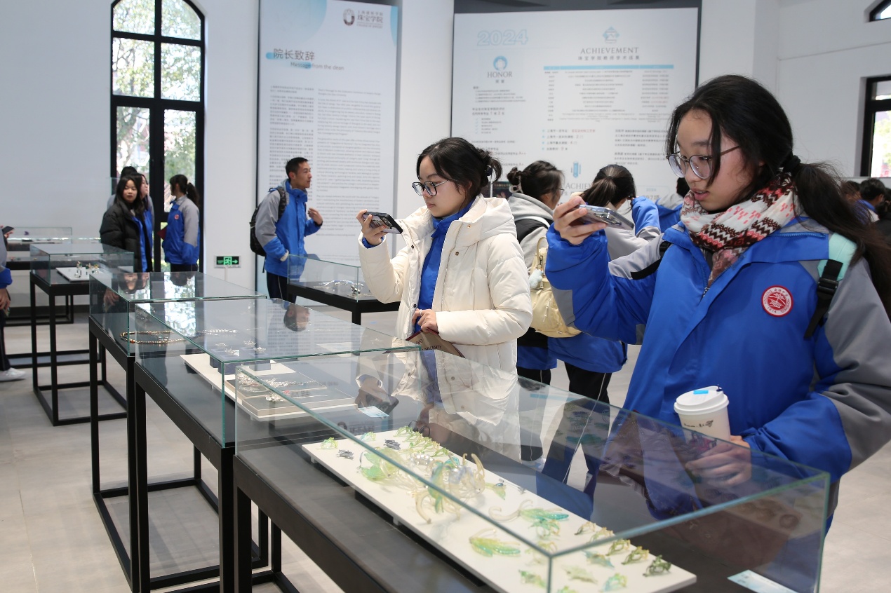 之后由学院实验室龚已定老师带领同学们参观了金工、手绘、玉雕等专业实验室及学院毕业作品展。通过赵老师和龚老师的介绍讲解让同学们对珠宝玉石、首饰设计制作等产生了浓厚的兴趣。