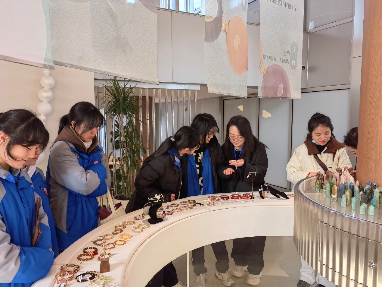结束完珠宝学院的参观后二位老师又陪同新场中学的同学老师们前往建桥珠宝艺术中心并由王潮老师对珠宝艺术中心的整体设计理念与所陈列的珠宝艺术展品做进一步的讲解。