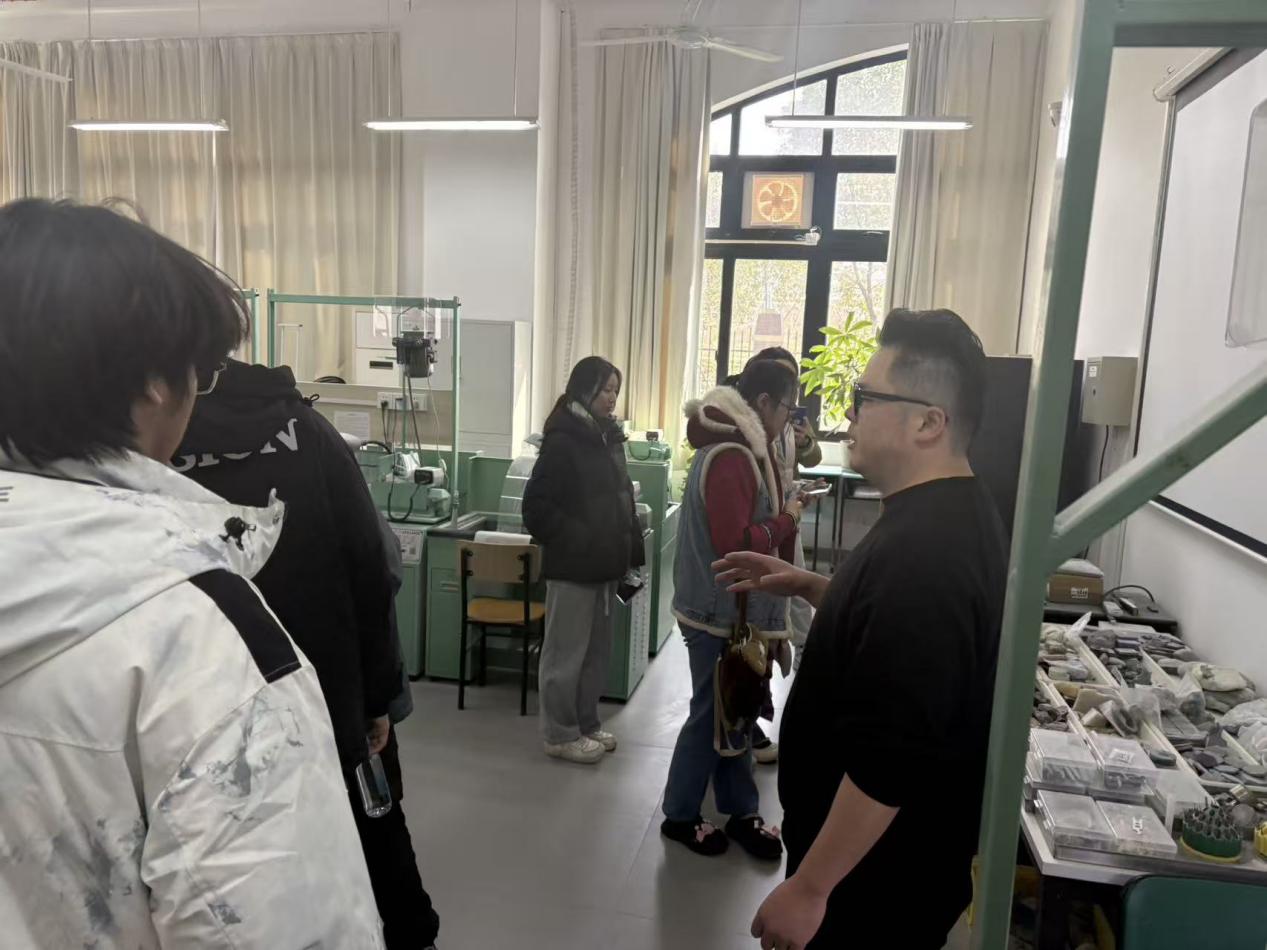 介绍会结束后,在实验室龚已定副主任的组织与带领下,同学们实地参观了珠宝学院实验室。龚老师讲解各类精密仪器的功能,演示珠宝鉴定与工艺制作流程,并解答学生提问。通过近距离观察和互动体验,同学们对珠宝材料的科学研究、设计创作及先进制造技术有了更直观的认识,切身感受到学院扎实的教学与科研条件。