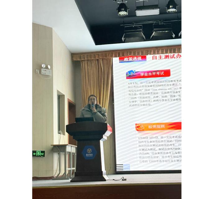 在交流研讨环节,郑俞欠老师结合2026年学校工作安排,对春季入学、秋季入学的申请流程、选拔标准、专业布局进行了详细说明。针对高三学子关注的录取规则,郑老师重点讲解了春季自主测试的预约方式以及秋季入学中平行志愿的填报技巧,帮助考生精准把握升学节奏。同时,围绕春季入学计划中的宝石及材料工艺学、网络工程(双语班)和机械设计制造及其自动化等专业,郑老师从课程体系、就业前景、升学通道等方面展开介绍,强调学校在应用型人才培养中的资源优势,鼓励有相关兴趣的学子把握成长机遇。